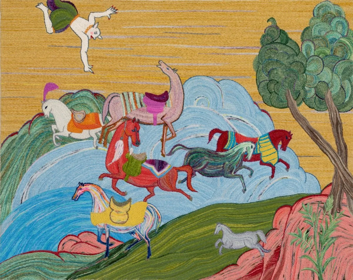 Join Joanna Pinsky on an exploration of Chicago’s West Town galleries beginning with an exhibition of mysterious landscapes and still lifes by Michelle Wasson at Andrew Rafacz Gallery. Soft and infused with light, the images are either melting away or evolving into focus. In the same gallery, we’ll see embroidered paintings by Soheila Kayoud depicting demon-like figures from Middle Eastern mythology.